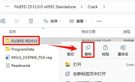 16.返回“Crack”文件夹,选中 ”FLOEFD FE2512“文件夹,鼠标右键点击“复制”