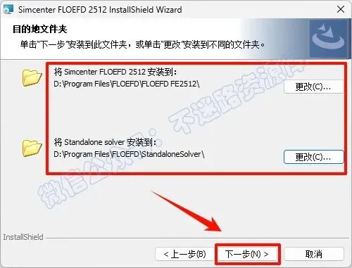 8.选择软件和求解器安装路径,建议和教程中的保持一致,本例安装到D盘(将路径地址中的首字符C改为D表示安装到D盘,安装路径不要出现中文),点击“下一步”