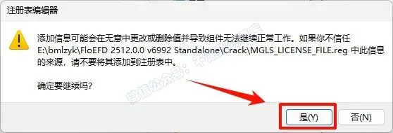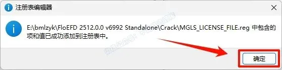 22.再次返回“Crack”文件夹,双击“MGLS_LICENSE_FILE.reg”注册表文件