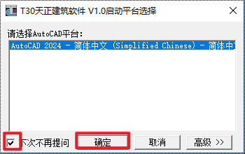 13.选择“CAD平台“,建议不要勾选“下次不再提问”,点击“确定“