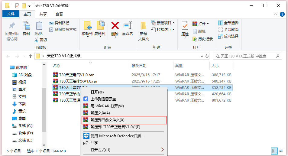 1.选中需要安装的软件,鼠标右击"解压到当前文件夹"