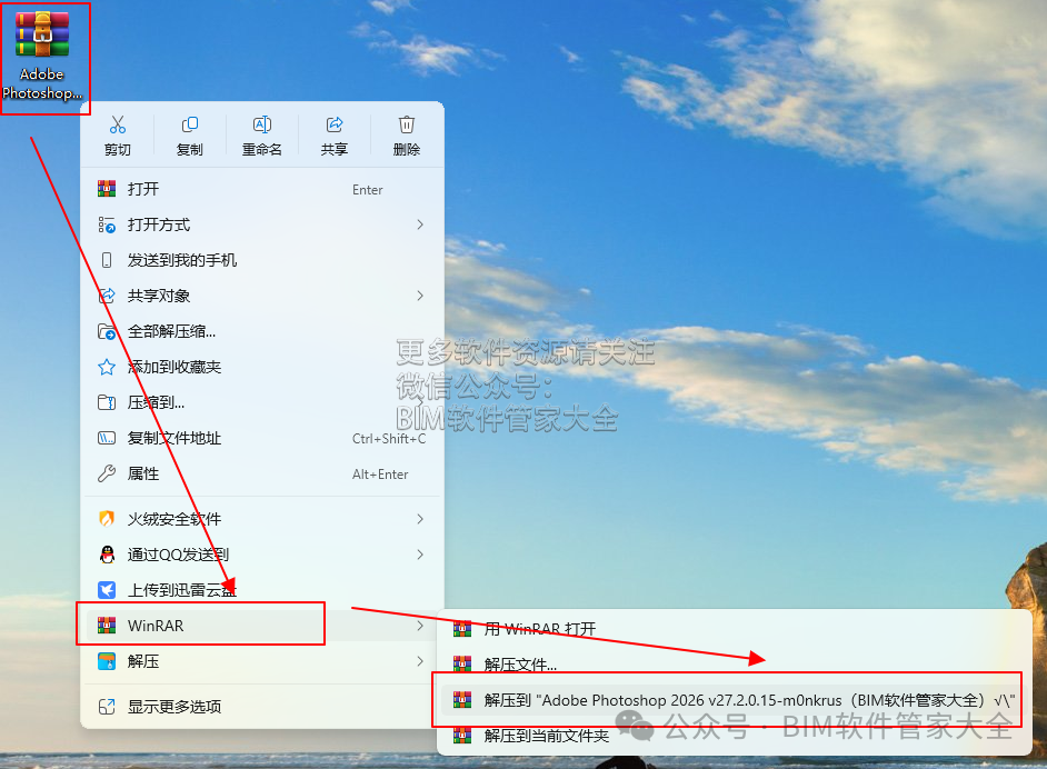 Adobe Photoshop是平面图像处理业界霸主Adobe公司推出的跨越PC和MAC两界首屈一指的大型图像处理软件.它功能强大,操作界面友好,得到了广大第三方开发厂家的支持,从而也赢得了众多的用户的青睐。PS软件大家已经很熟悉了,但是不熟悉的插件简直太多了,PS插件功能数不胜数,且种类繁多,不知道大家目前有了解和使用过的,到底有多少,今天小编给大家介绍一款优秀的2025版本PS,真的很强,你要不要试试? 此版本PS软件本身内置了很多功能,所以也无需大家担心使用语言版本不同的问题。[软件名称]:Adobe Photoshop 2026 v27.2.0.15-m0nkrus(Ps2026)[注意事项]:安装前请关闭网络、杀毒软件和防火墙,否则易安装失败。[注意事项]:因为微信公共号暂时不能点击外链,所以请复制到浏览器上面打开链接!如果链接打不开,先检查链接是否复制完整;若链接无误打不开建议换个浏览器打开。[下载方法]:电脑打开浏览器,复制下载链接,粘贴至浏览器网址栏(网址栏哦,网址,不是百度搜索框)打开,点保存到网盘,然后打开自己的网盘客户端,找到保存的软件安装程序,用鼠标右键单击,点下载,等待下载完成即可(本文仅供学习交流使用)。[解压软件]:小编用的解压软件是Bandizip,推荐使用Bandizip软件进行解压。[特别提醒]:解压和安装前先退出360、电脑管家等所有杀毒软件,且WIN10需要关闭“设置-更新与安全-Windows安全中心-病毒和威胁防护-管理设置-实时保护-关”,防止误杀破解工具,导致激活失败。1、鼠标右键选择下载好的安装包【Adobe Photoshop 2026 v27.2.0.15-m0nkrus(Ps2026)】,然后选择【解压到“Adobe Photoshop 2026 v27.2.0.15-m0nkrus(Ps2026)”】进行解压。(下载软件安装包之前务必将杀毒软件以及防火墙关闭,避免将破解补丁或注册机删除)温馨提示:win11系统需先点击“显示更多选项”,找到解压软件进行解压。2、鼠标左键双击打开解压好的【Adobe Photoshop 2026 v27.2.0.15-m0nkrus(Ps2026)】文件夹。3、在打开的文件夹中找到【setup.exe】,鼠标右键点击【setup.exe】选择【以管理员身份运行】。7、软件安装完成,直接点击【关闭】,先不要运行软件。8、点击【开始菜单】→【找到所有应用】→【拖动软件图标】即可创建快捷方式。9、桌面创建好快捷方式了,鼠标左键双击软件图标打开软件。12、软件动态展示如下。