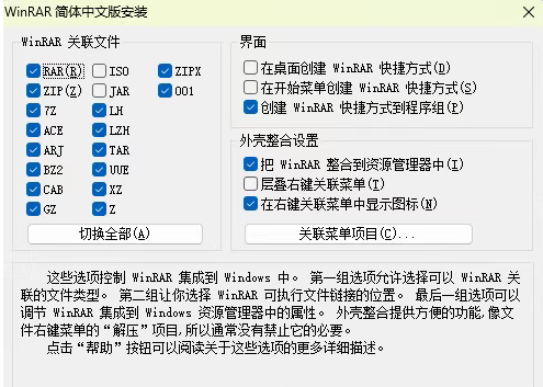 还能给压缩包设密码,隐私文件再也不怕泄露。安装也超简单,分 32 位和 64 位,根据自己电脑型号选就行,安装时能创建桌面快捷方式,右键菜单直接调用,压缩、解压一步到位,操作超顺手