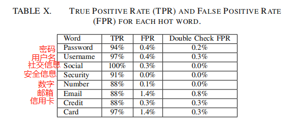 密码、用户名、社交信息等,都属于重点信息。结果显示,在这模型下,识别成功率达 90%。