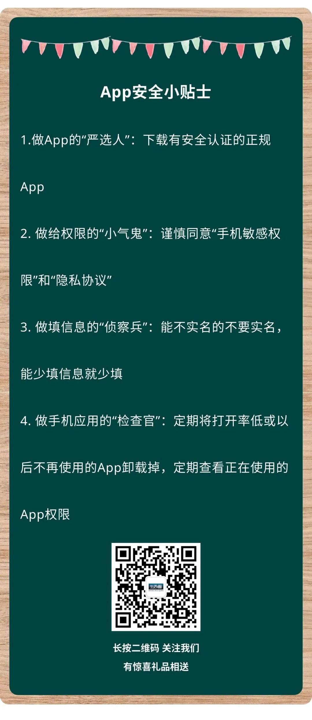 优先选择市场上的大型应用商店,下载有安全认证的正规App,除非确认为信任链接,否则不下载短信链接或网页跳转的App。下载App,我们也是有门槛的!