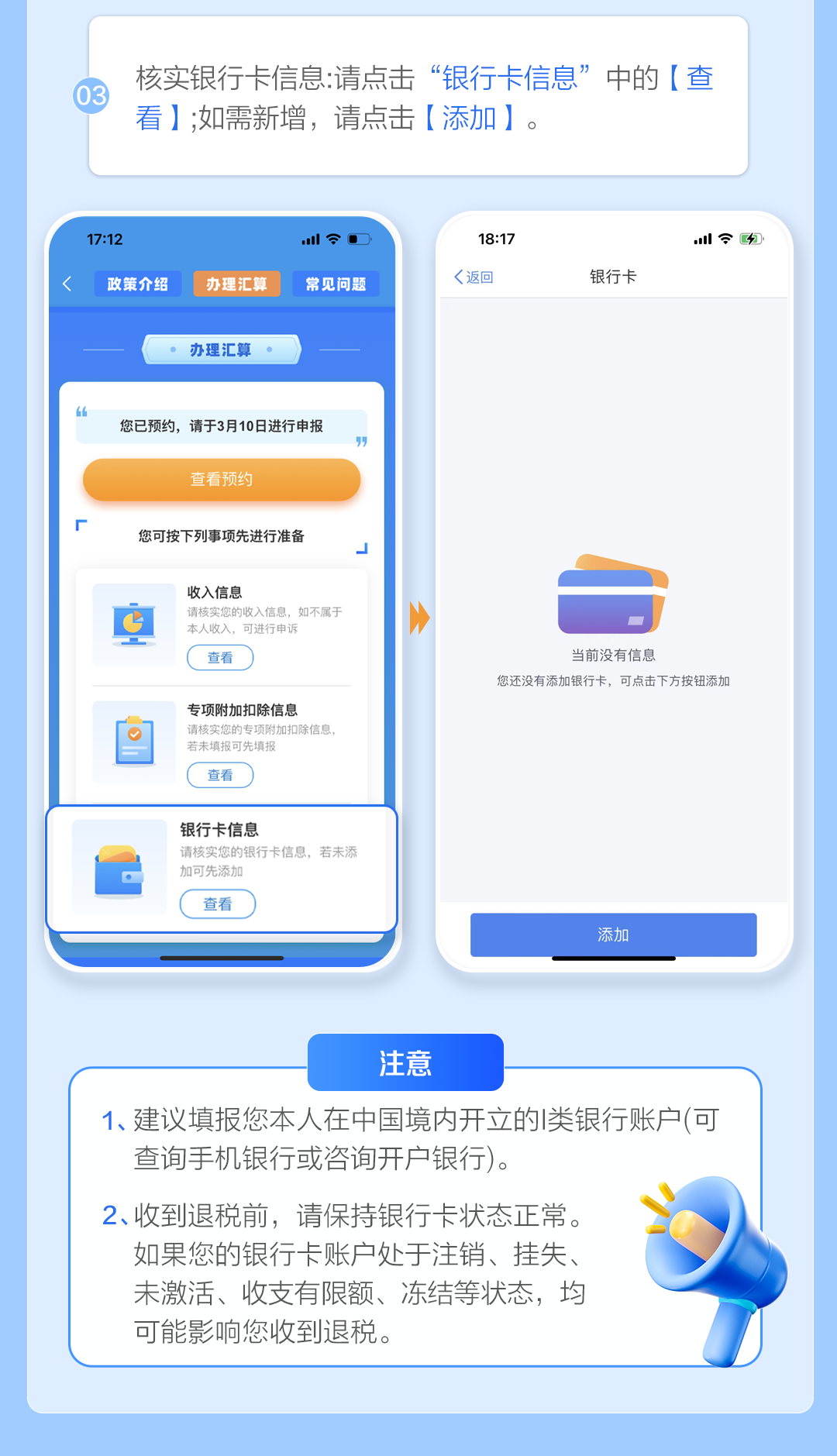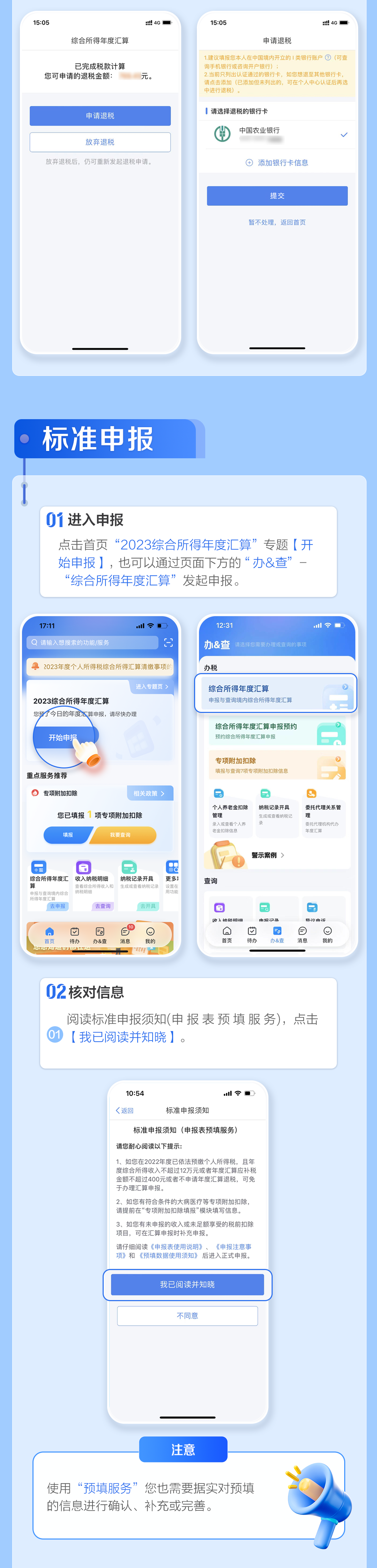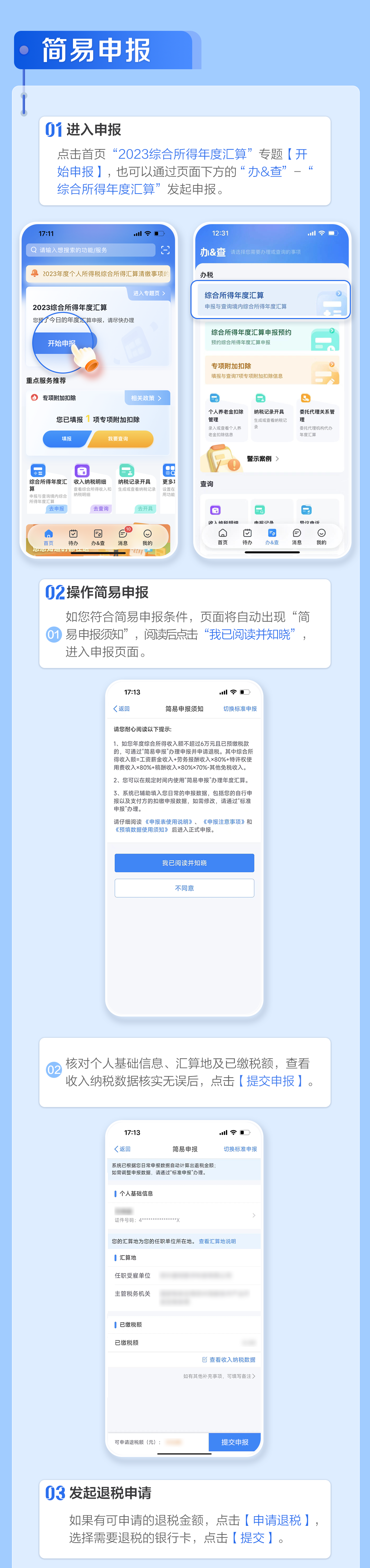 今天起,您无需预约,可以随时办理个人所得税综合所得年度汇算。建议您通过手机个人所得税APP掌上办理,方便又快捷。