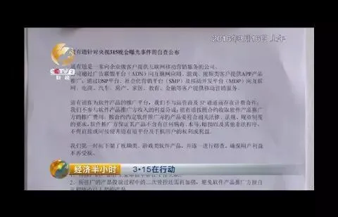 道有道(北京)科技股份有限公司战略发展部总经理刘仁刚:首先要感谢央视对315恶意扣费的曝光,这对于整个行业的环境、企业的自查都是非常有帮助的。道有道作为一个公众企业,我们不推卸责任,在这个环节当中,道有道存在的一些工作中的缺失,我们要向消费者说对不起。我们会积极的联系这些用户,和相关部门配合,对于有损失的用户,道有道先行赔付。第二个来说,昨天晚上我们对所有上架的产品进行了查询,只要是有恶意扣费的软件,就从广告平台上下架。