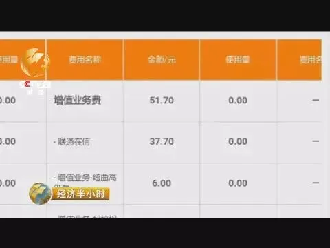 在2016年1月份,罗先生的增值业务费高达51.7元,其中包括37.7元的联通在信、6元的炫曲高级包、8元的蚂蚁视频包月费