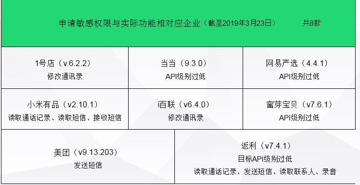 建议:1、如消费者经常使用日历记录敏感事项,对APP的日历权限应谨慎授权;2、APP开发者如无十分必要,建议尽可能不使用手机日历权限。