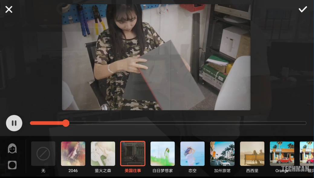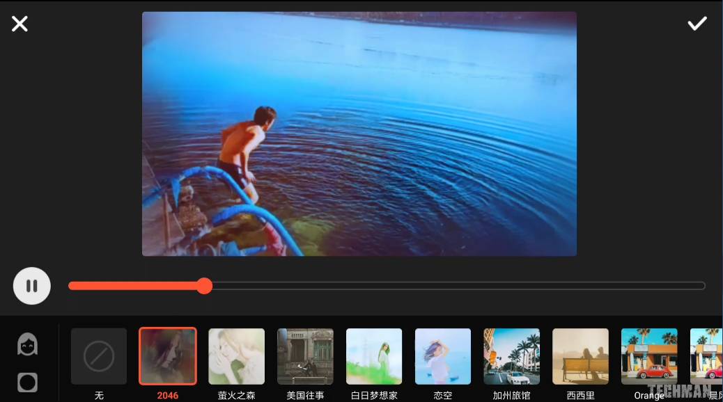 最后来说一下滤镜,视频全部剪辑好以后可以选择一个滤镜,让视频看起来更好看,里面提供了非常多不同风格的效果,可以根据自己的喜好选择一个。