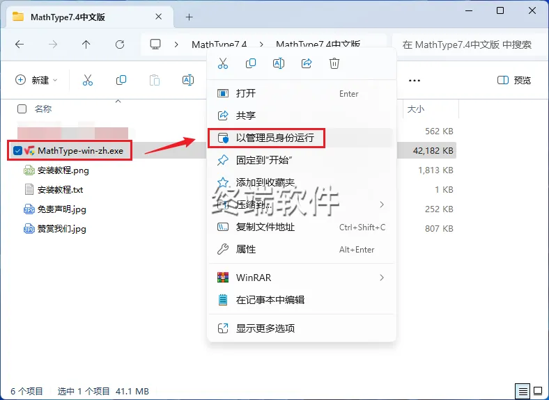 2.右键【MathType-win-zh.exe】选择【以管理员身份运行】