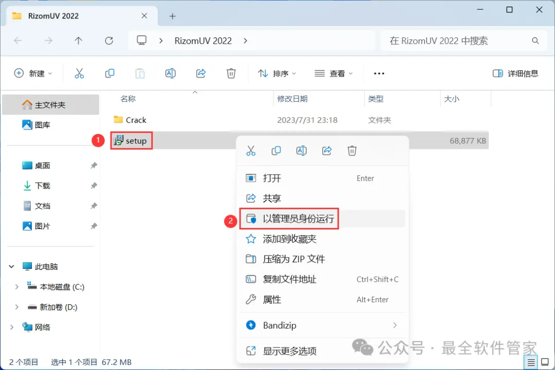 3、找到【setup】应用程序,右键选择【以管理员身份运行】它