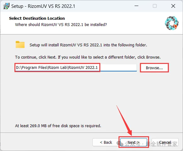 5、软件默认安装在C盘,可自定义更改软件安装位置,这里小编选择安装在D盘;点击【Next】