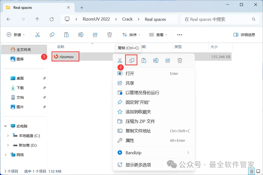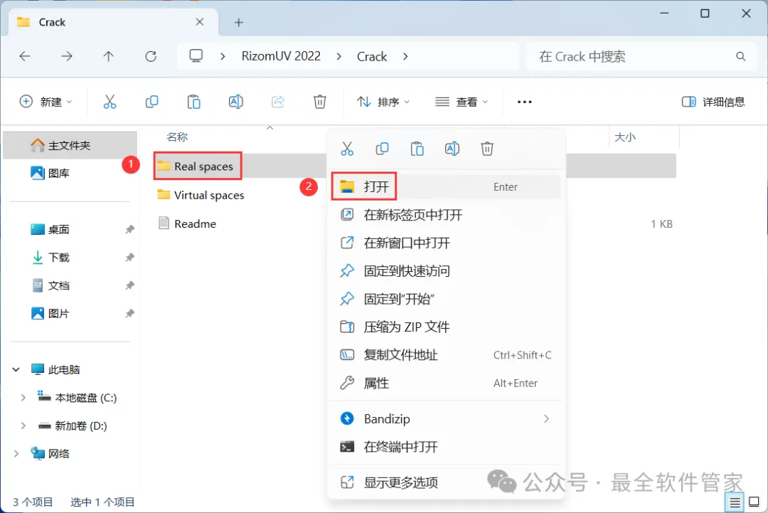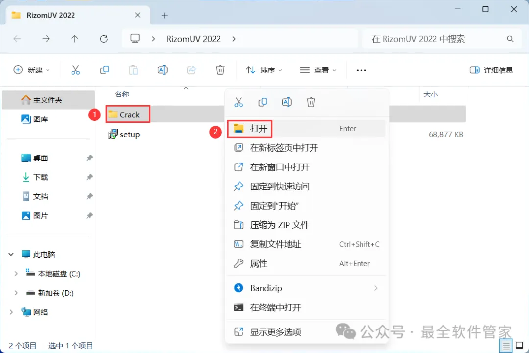 11、回到RizomUV 2022文件夹,找到【Crack】文件夹,右键【打开】它
