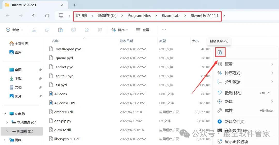 1、下载RizomUV 2022软件安装包到电脑上,右键选择【解压到RizomUV 2022\】