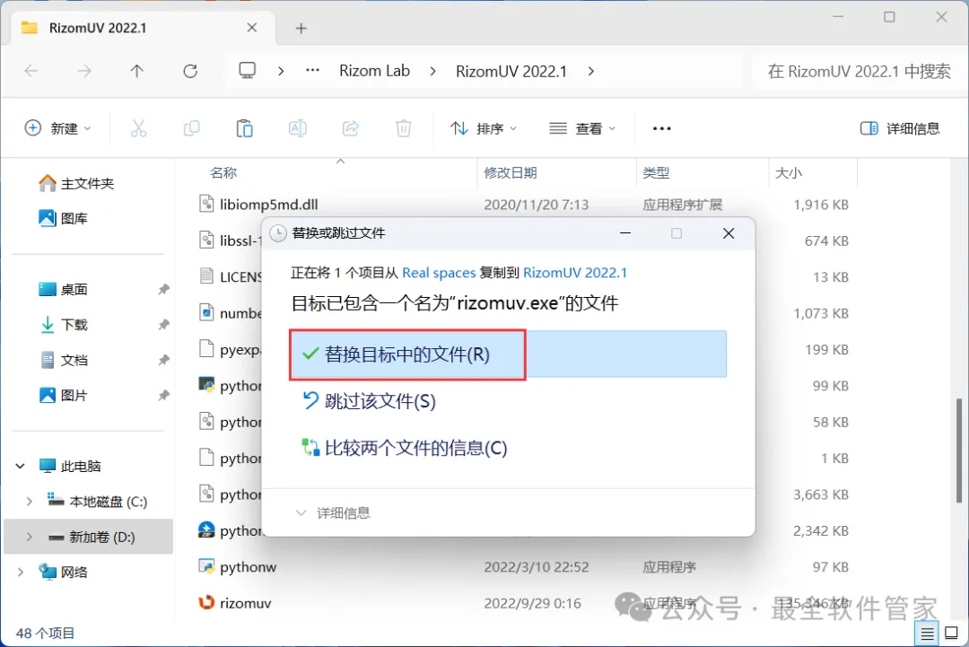 16、点击【替换目标中的文件】