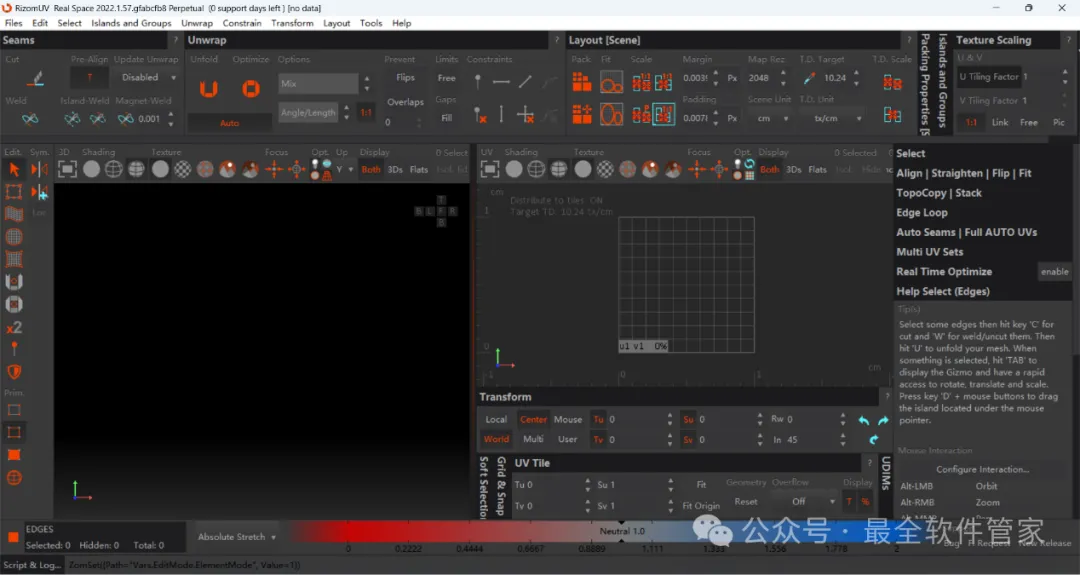 RizomUV 2022是一款三维模型展UV软件,Rizom Lab发布了UV贴图工具Unfold3d最新版本RizomUV Real Space&Virtual Space,现在称为RizomUV,是目前CG软件中比较优秀的展UV软件,凭借其爆破性快速UV展开功能而闻名,新版本更新添加了新的Photoshop样式功能,用于对齐和分布UV岛,自动保存系统以及对选择和纹理像素密度管理工作流程的改进。