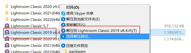 2.鼠标右击【Lightroom Classic 2019 v8.4.0】压缩包选择【解压到 Lightroom Classic 2019 v8.4.0】