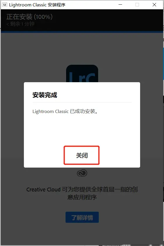 6.安装完成,点击【关闭】