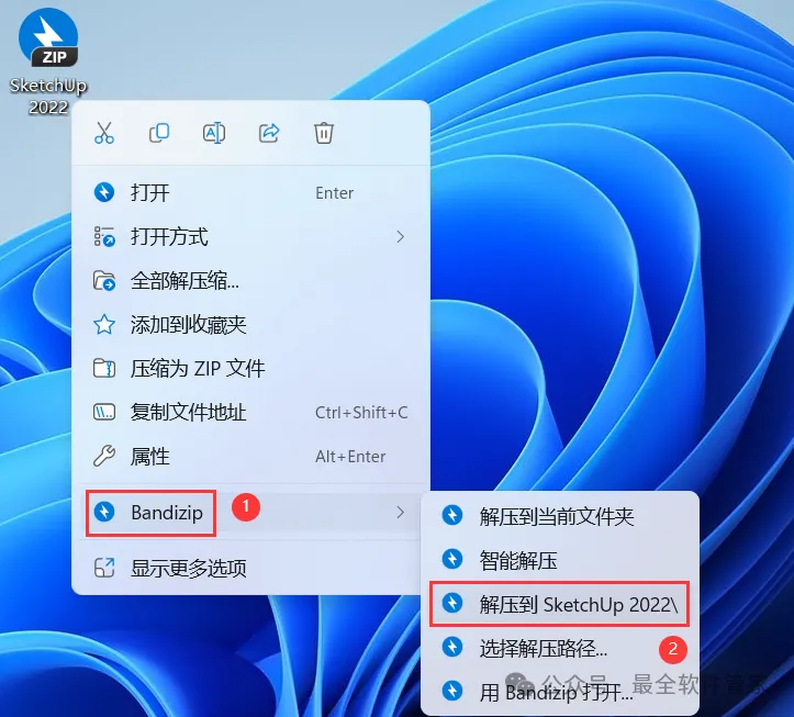 1、下载SketchUp 2022软件安装包到电脑上,右键选择【解压到SketchUp 2022\】