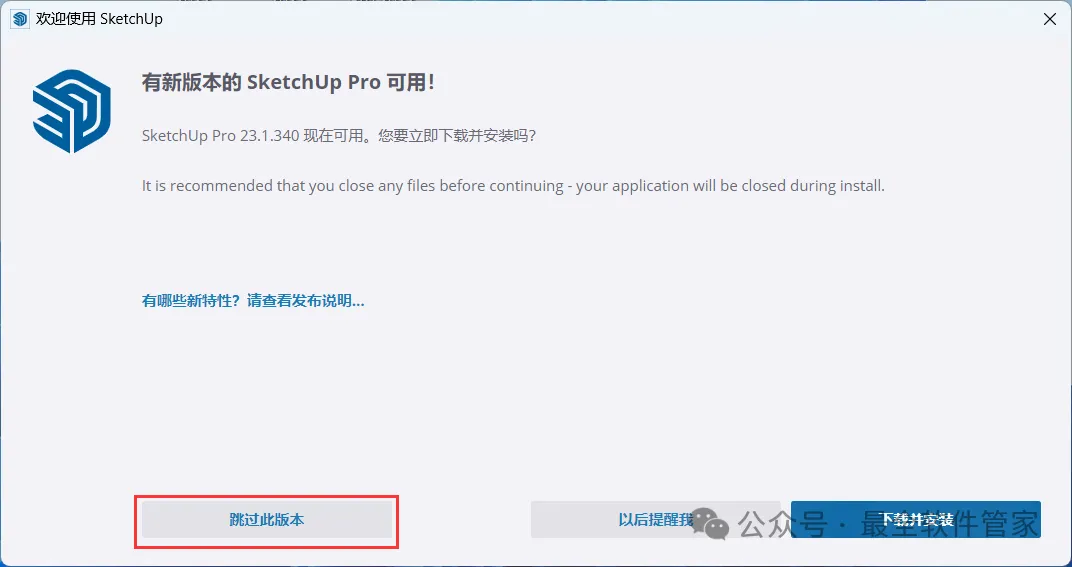 14、点击【跳过此版本】