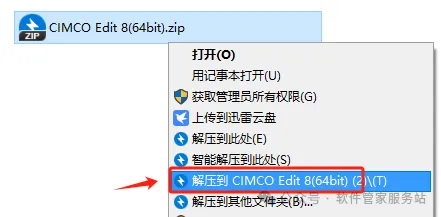 第二步:将下载好的文件选中,右击,解压到……