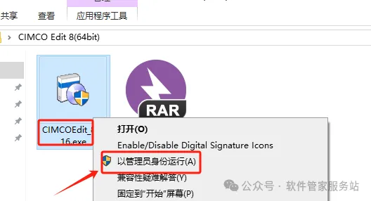 第三步:打开解压的文件夹,找到CIMCOEdit_80216,右击以管理员身份运行。