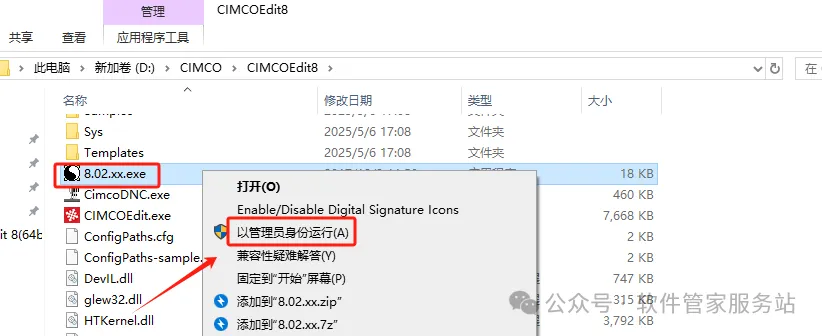 第十七步:在安装目录下,选中8.02.xx文件,右击以管理员身份运行。