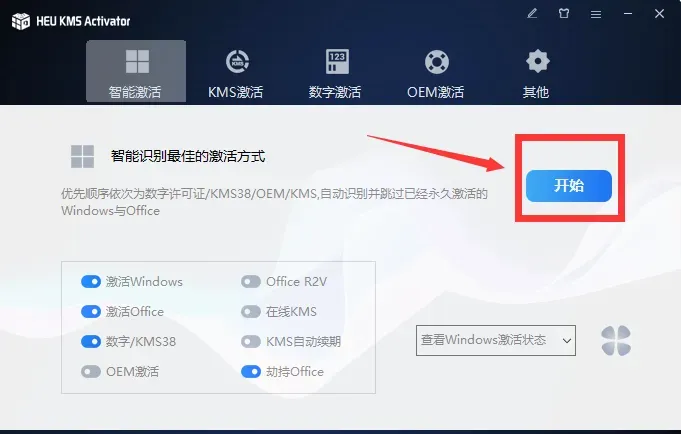 7.点击【智能激活】里面的开始,等待片刻就激活了