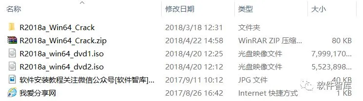 1.使用“百度网盘客户端”下载Matlab 2018a软件安装包和Crack破解文件到电脑磁盘里,注意:Matlab 2018a安装包为两个iso格式文件!如下图所示: