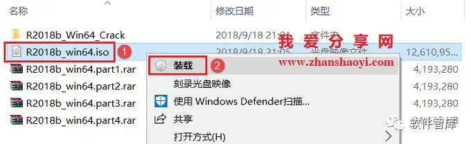 2.解压完成后,找到R2018b_win64.iso,鼠标右击选择【装载】