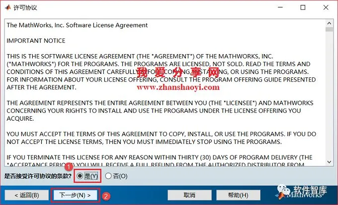 5.许可协议界面,勾选“是”,然后点击【下一步】