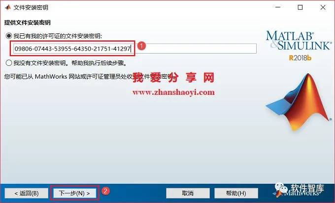6.先勾选第一项,然后输入安装密钥:09806-07443-53955-64350-21751-41297,点击【下一步】