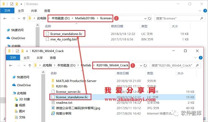 14.返回软件初始安装包,双击打开R2018b_Win64_Crack文件夹(若未解压需先解压缩),然后将license_standalone.lic复制粘贴到软件安装目录中licenses文件夹里,例如小编的安装目录是D:\Matlab2018b,所以粘贴到D:\Matlab2018b\licenses\文件夹下