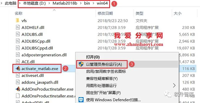17.依次打开D:\Matlab2018b\bin\win64文件夹,找到activate_matlab.exe文件,鼠标右击选择【以管理员身份运行】