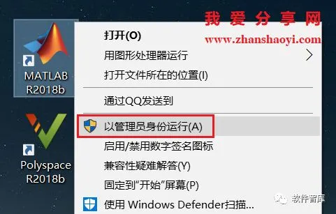 21.返回桌面,找到MATLAB R2018b图标,鼠标右击选择【以管理员身份运行】