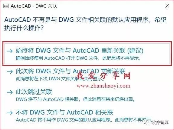 12.弹出AutoCAD-DWG关联窗口,点击“第一个”
