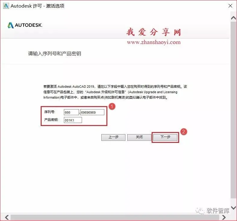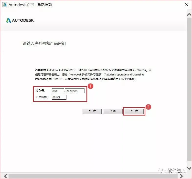 19.再次输入序列号:666-69696969,产品密钥:001K1,然后点击【下一步】