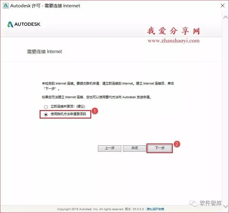 16.勾选“使用脱机的方法申请激活码”,然后点击【下一步】