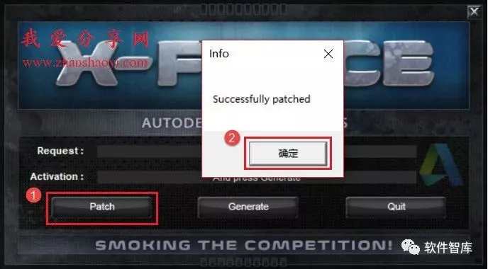 22.弹出注册机界面,点击【Patch】,弹出Successfully Patched提示框,点击【确定】