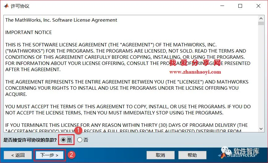 7、许可协议界面,勾选“是”,然后点击【下一步】
