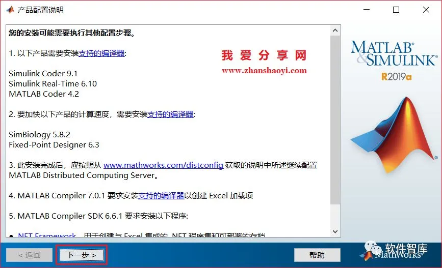 14、安装完成自动进入“产品配置说明”界面,默认,点击【下一步】