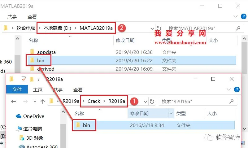 18、将Crack\R2019a\bin文件夹复制并粘贴到软件安装目录中,例如小编的安装路径位是D:\Matlab2019a,所以复制到D:\Matlab2019a文件夹中