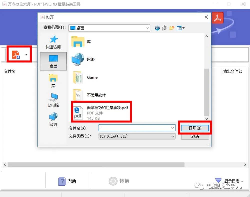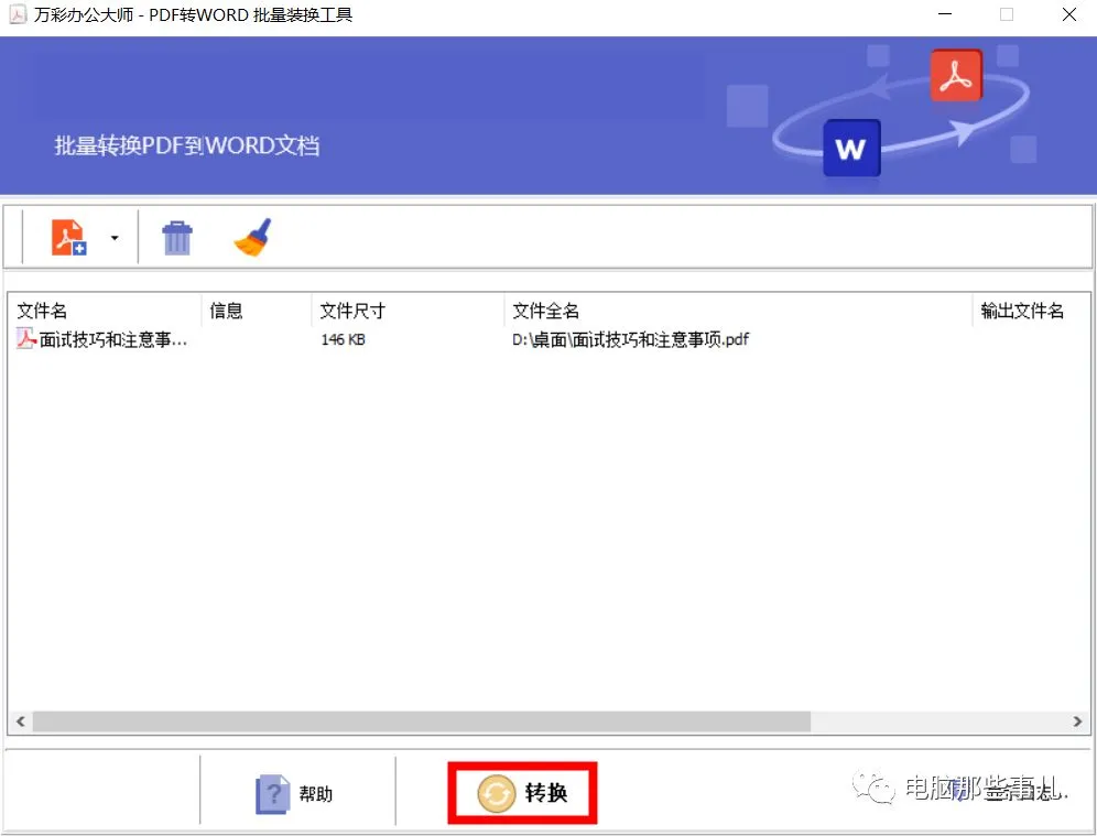 4、进入转换工具后,点击右上角的add(添加按钮),选择需要转换的PDF文件,然后点击底部的转换,选择保存位置,等待转换完成即可。