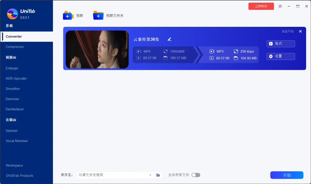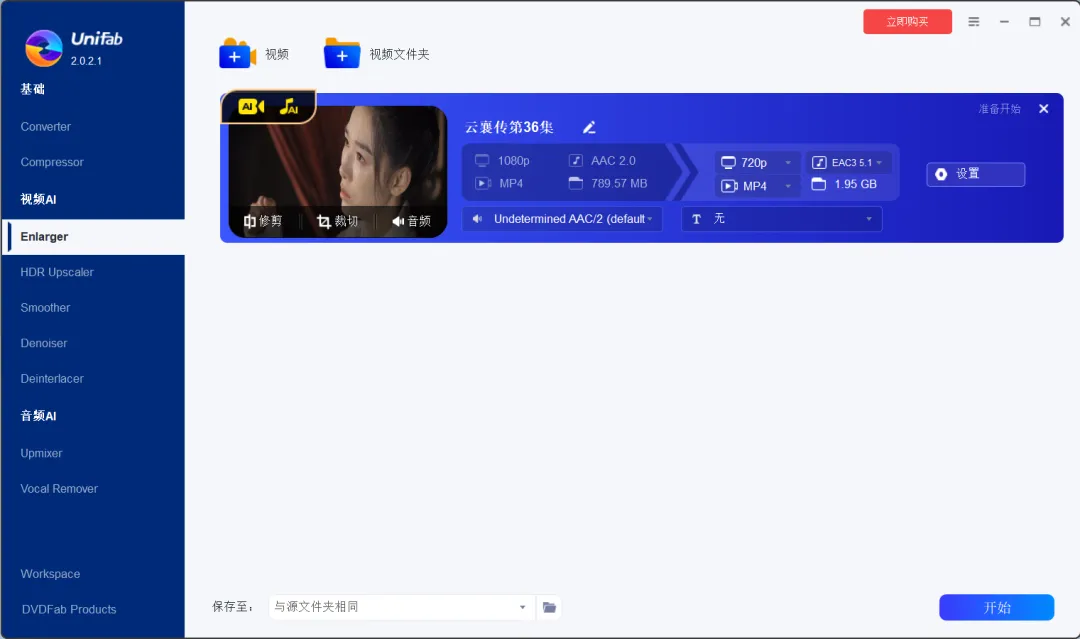 那么可以试试这款 UniFab ,UniFab 既是一款视频格式转换器,也是一款简单的视频 AI 处理器。