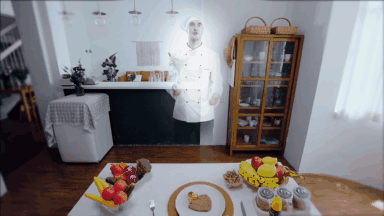 通过手势、或者语音来操作,可以把虚拟的商品页打开,也可以直接把虚拟商品扔进购物车,是不是很有未来感 ~