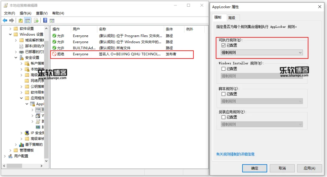 Applocker使用规则和文件属性来对应程序进行访问控制,你可以基于文件名,版本号、路径、数字签名的发布者等属性来限定指定的程序,我们则可通过它来禁止全家桶软件的安装。