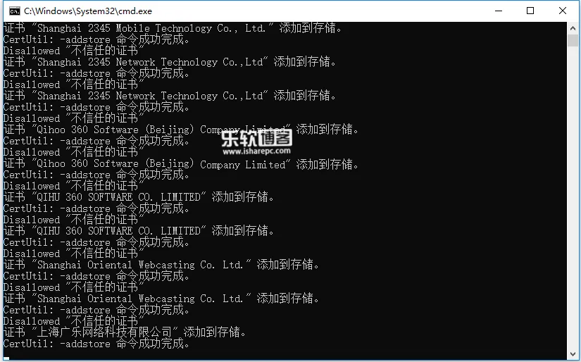 要是后悔了,还可以通过powershell运行一键洗白脚本,可以批量删除你导入的证书,或者打开证书管理员删除