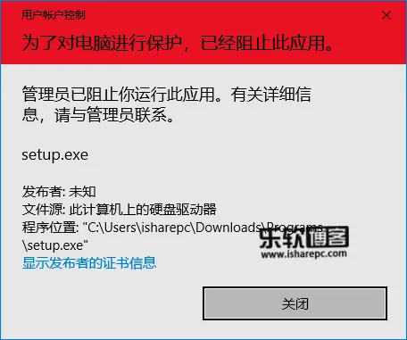 这样当我们运行任何发布者为360的程序,都会被阻止,如图: