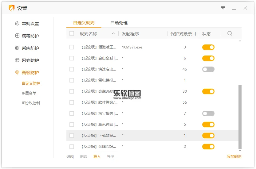 这里分享一个网友FLY_MC制作的专门反流氓的规则文件,涵盖比较广泛,包括了各种流氓全家桶软件的安装防护、拦截下载站垃圾高速下载器、以及一些虚假KMS激活器的运行等等~